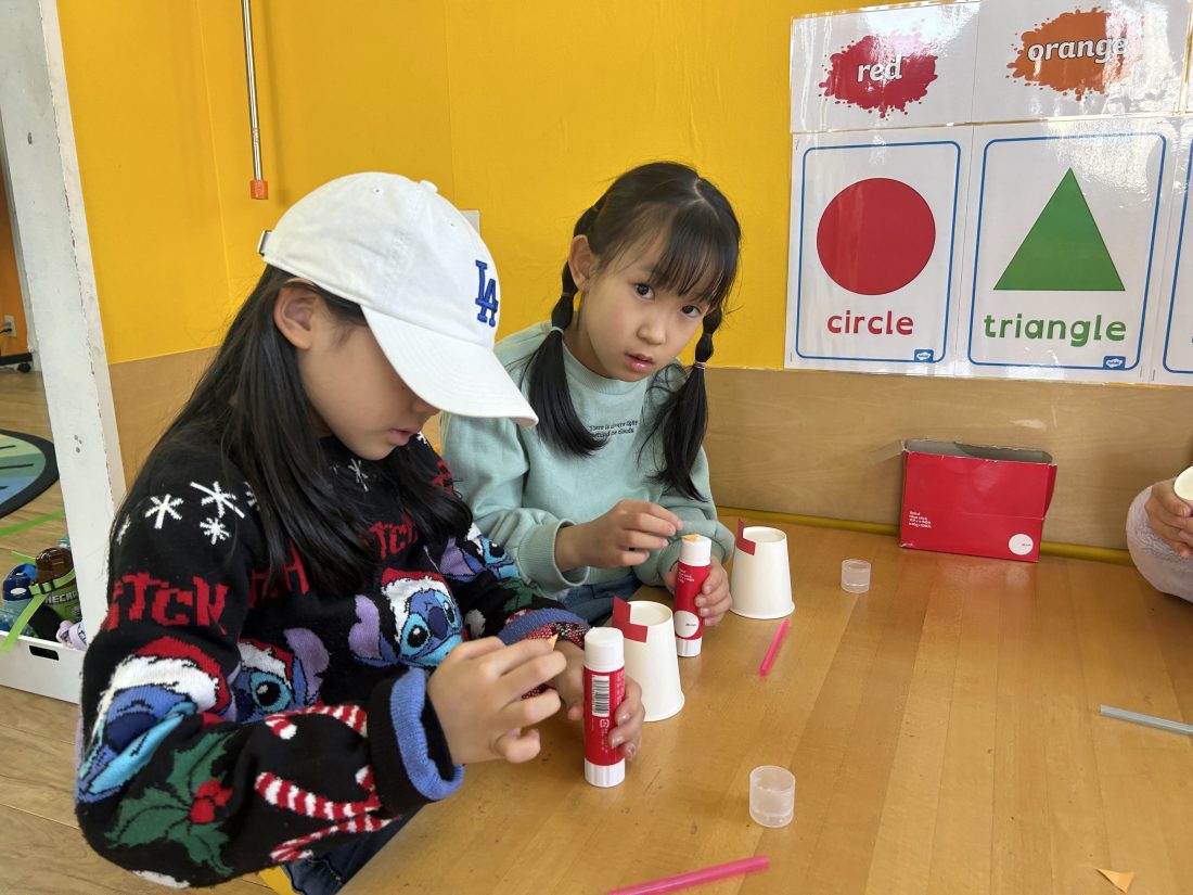 1日目は、クラフトタイム✂️では、紙コップを使ってSnow man⛄️を作りました!みんな上手に可愛く作っていましたよ!
