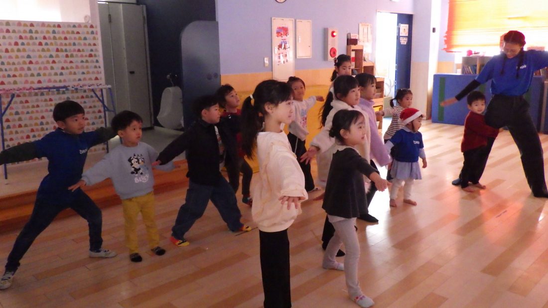 2日目は、あいにくの雨だったので、室内で、ビデオを見ながら、体を動かしたり、ゲームなどのActivitiesを行いました!