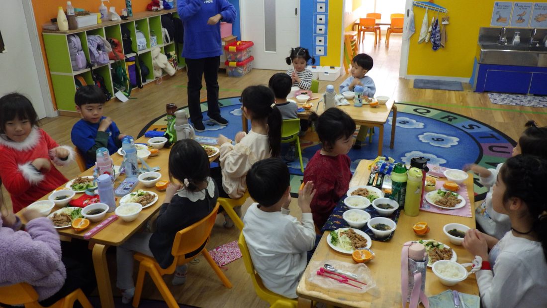 その後、Lunch Timeでは、豚肉定食で自分たちでご飯やお味噌汁などをプレートに乗せて美味しく食べていました!また、お味噌汁とご飯をおかわりする子どもたちが沢山いました!