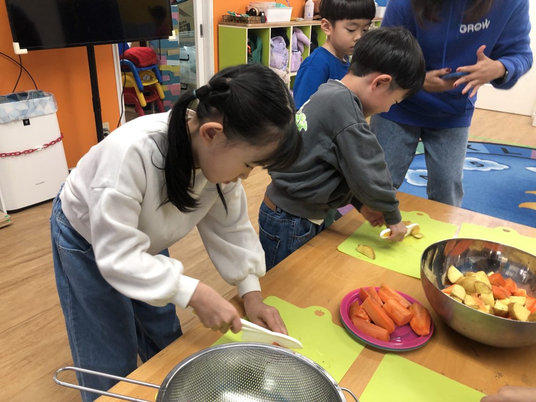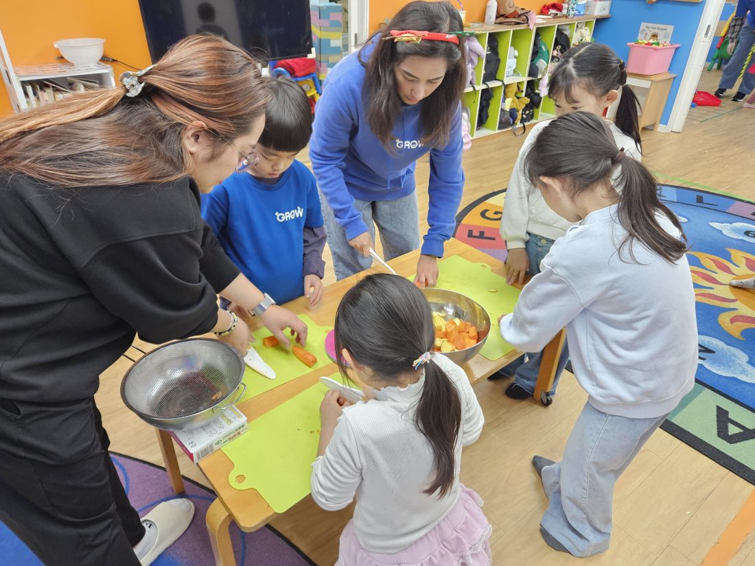 大きいお友達と小さいお友達に分かれてフルーチェ作りとカレーの材料を刻んだりとみんなで一緒にクッキングをしました🍳