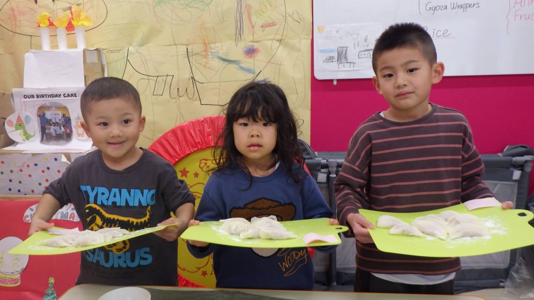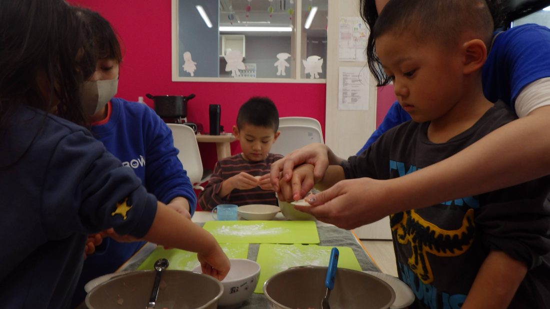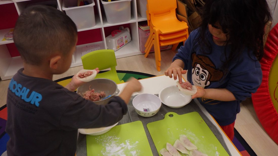 ほとんどの子どもたちが作ったことがなくて、餃子を包むのがすごく難しいともがきながらもみんな頑張って上手に餃子を包んでいました!😆