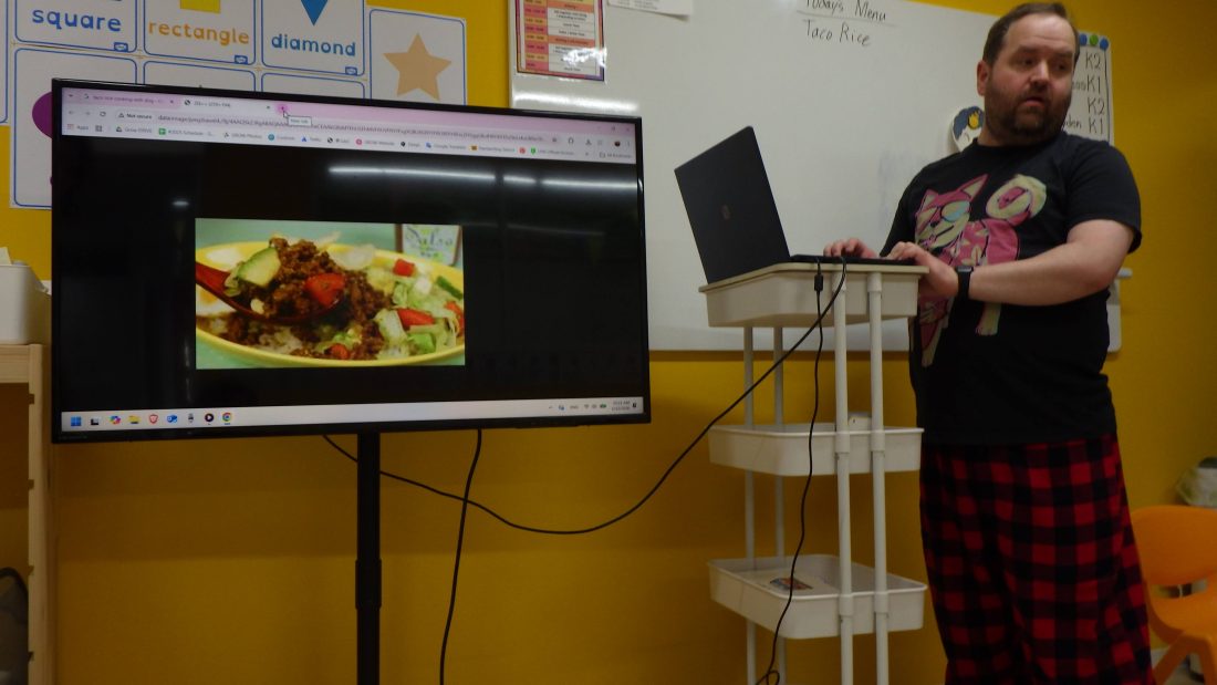 朝は通常通りcircle timeを行い、そこで今から作るタコライスについて少しだけお勉強していました。