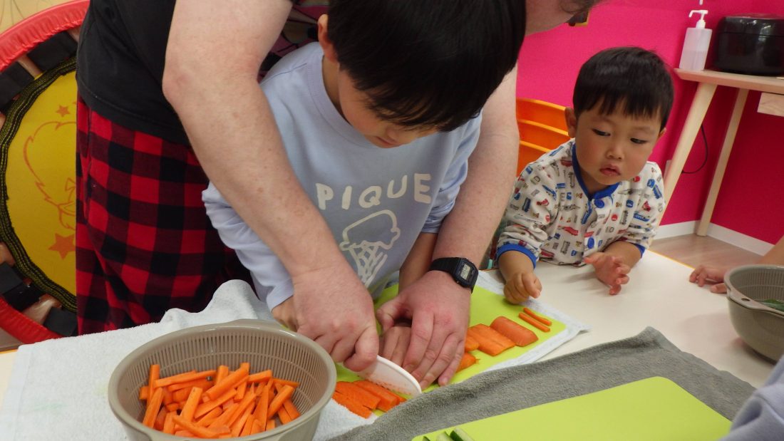 そして、Cooking time🍳では、人参を切るチーム🥕、きゅうりを切るチーム🥒、レタスを手でちぎるチーム🥬の3つに分かれてみんなでローテーションしながら、楽しくCookingをしていました!